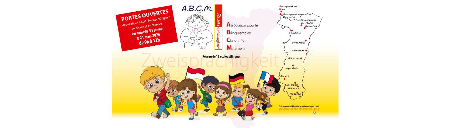 Précurseur de l’enseignement bilingue en Alsace et en Moselle, A.B.C.M. Zweisprachigkeit emploie aujourd’hui plus de 100 salariés et accueille dans ses 11 écoles plus de 1200 élèves âgés de 3 ans à 11 ans.